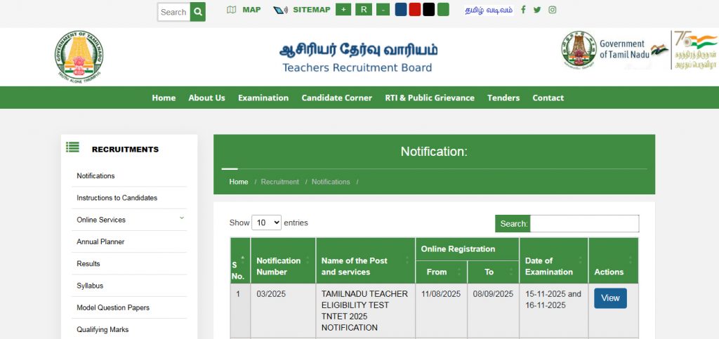 மாணவர்கள் மற்றும் தேர்வர்கள், தேர்வு தொடர்பான கூடுதல் விவரங்களை TRB அதிகாரப்பூர்வ இணையதளமான **www.trb.tn.gov.in**-ல் அறிந்து கொள்ளுமாறு கேட்டுக்கொள்ளப்பட்டுள்ளது.